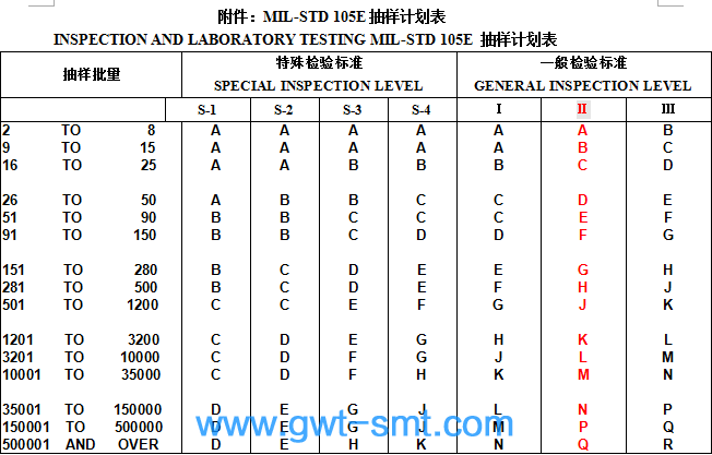 E. 采用II級(jí)檢驗(yàn)水準(zhǔn)(INSPECTION LEVEL II)。